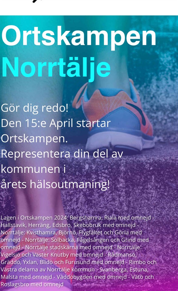Norrtäljekommun har satsat på att invånarna i kommunen ska röra på sig mer , BRA tycker vi tränare 🌟. Ortskampen startar den 15 april I vår lag ingår Hallstavik, Herräng , edsbro , skebobruk . Vi tävlar mot Norrtälje och Rimbo Registrera dig https://actimate.se/ortskampen-norrtalje/ Ladda ner appen actimate Vi hoppas att hallsta med omnejd är den ort som rör sig mest i kommunen 😃